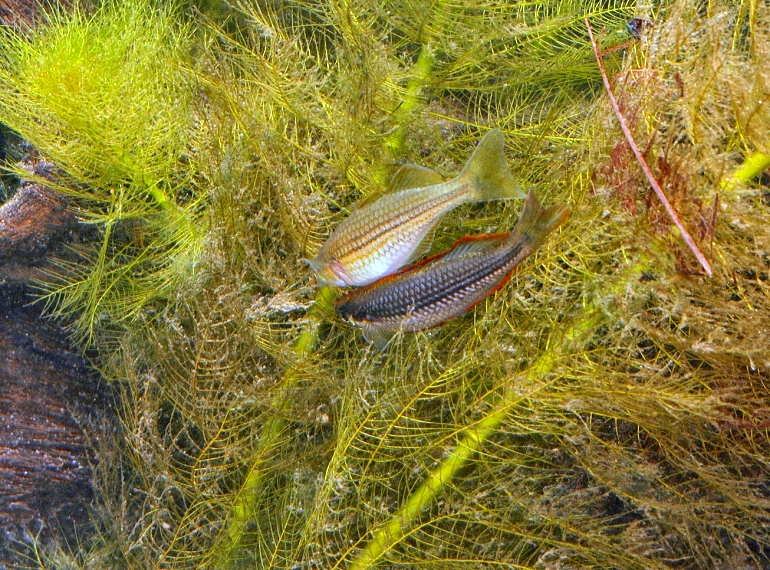 Nevertheless, genetic studies (P. J. Unmack 2009, pers. comm.) suggest that the "Waterfall Creek Exquisita" are an introgressed (e.g. hybridised) population of M. exquisita and M. nigrans. Introgression, which seems to be common among some sympatric rainbowfishes in their natural environment, as suggested above, frequently blurs the differentiations of rainbowfishes we recognise as species or populations. Although technically a 'hybrid', this process may contribute to a continuum in speciation and genetic diversity. This may be important to the species' ability to adapt to changing environmental conditions over time. Some populations may become better adapted than others; some may become extinct. However, it is a good idea not to maintain the different varieties together in the same aquarium.
