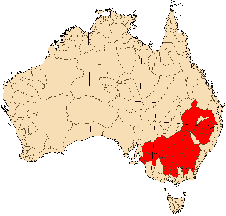 Melanotaenia fluviatilis have been found in the middle and lower sections of the Murray, Murrumbidgee and Macquarie Rivers, and in several tributaries of the Darling River. They are considered common and abundant in the Broken River and near Mildura in Victoria, around the Murray-Darling confluence, and in parts of the Goulburn River in Victoria. This species is also present in the middle to upper parts of the Gwydir River near Bingara, the Namoi River around the Peel River, Caroll Gap-Somerton on the Dumaresq River, and the Bogan River near Bogan Gate. It has also recently been recorded in low numbers near Gin Gin on the Macquarie River and Gongologon on the Bogan River. It is moderately common in some areas of its distribution range. However, Victorian and South Australian populations seem to be decreasing in number. This is not surprising; as the Murray River is the most used and abused river system in Australia.