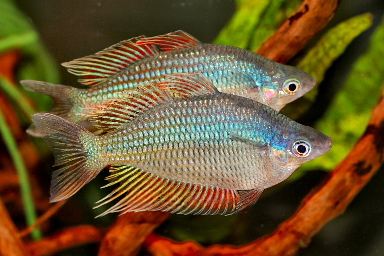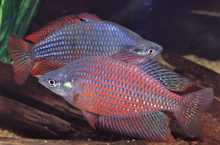 Melanotaenia rubrostriata (front) M. splendida (back) - photo© Gunther Schmida |